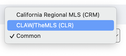 4.) Click on Common to expand additional MLS boards, and then select the MLS name that this listing is feeding from