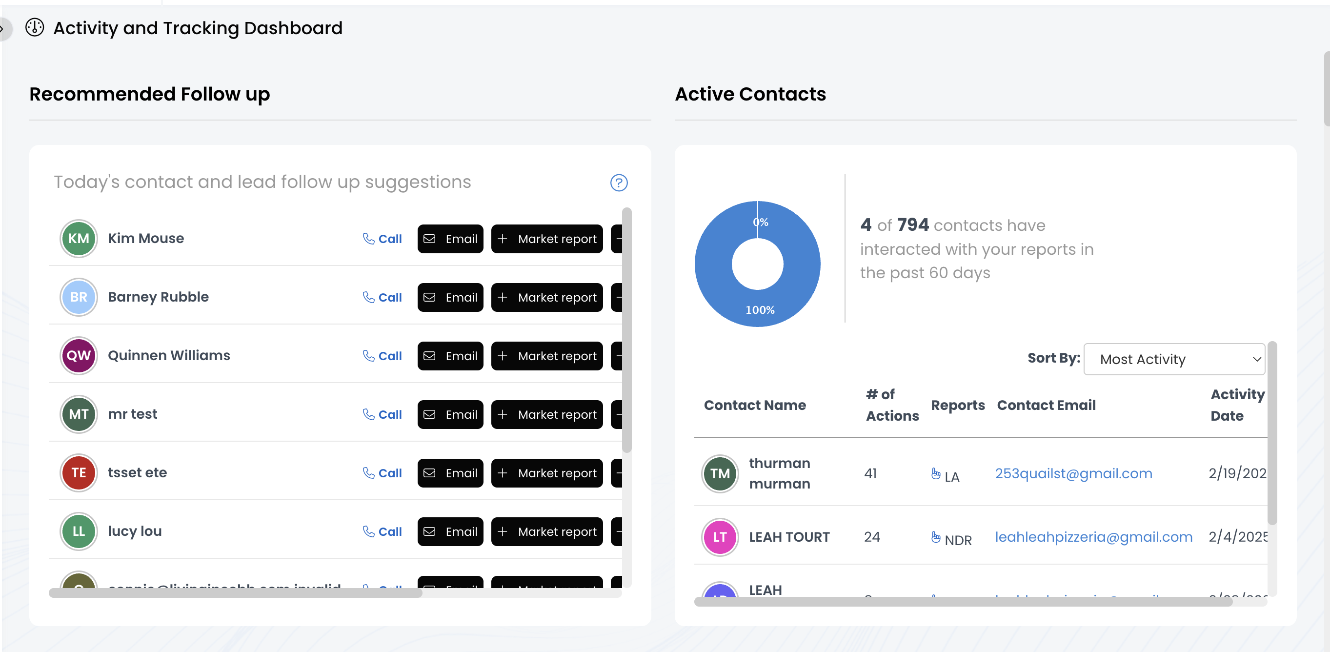 3.) Now you're viewing the Activity & Tracking Dashboard!