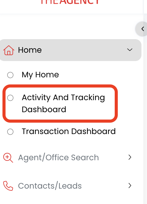 2.) Click on the Activity & Tracking Dashboard option