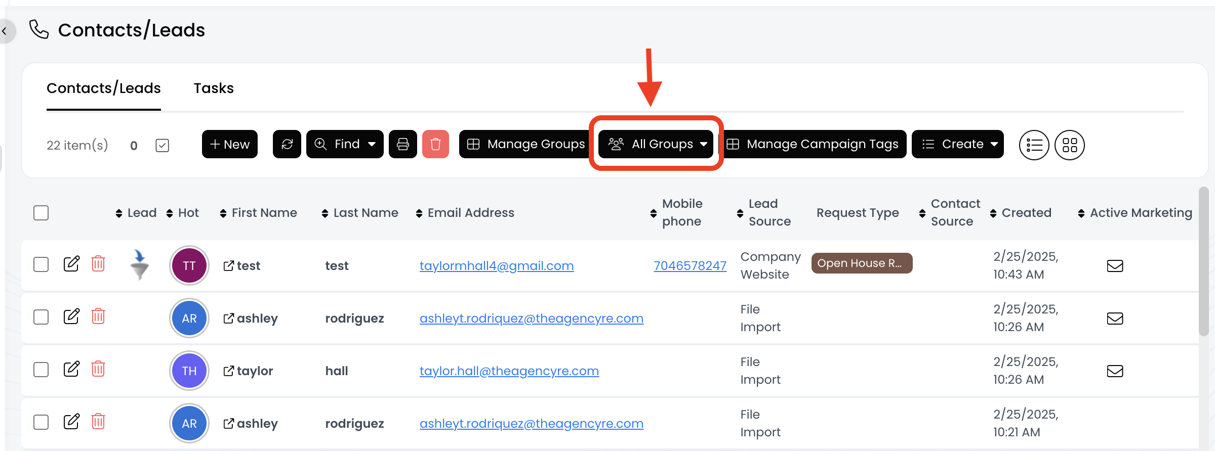 3.) Click on the All Groups button