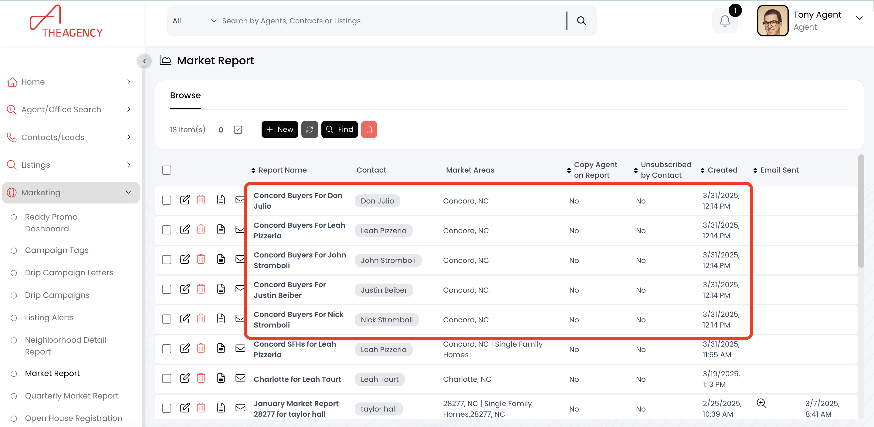If you go to the Market Reports page, you should see one market report for each contact in the Group.