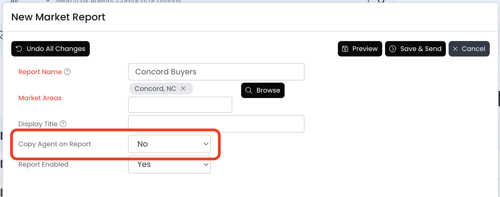 9.) Review the Copy Agent on Report field and make any necessary changes. This field controls your email notifications and always defaults to NO.