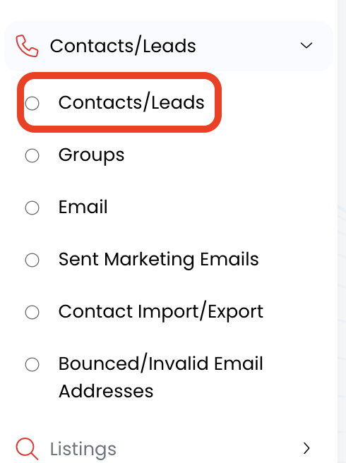 2.) Click on the Contacts/Leads option