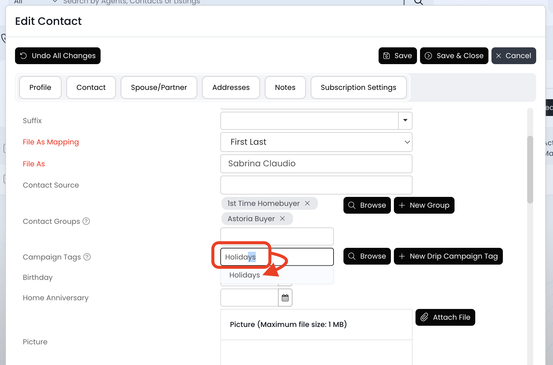 The campaign tag feature manages the contacts on a drip campaign. Each drip campaign is associated with a unique campaign tag, which must be added to the contact to initiate the drip campaign.