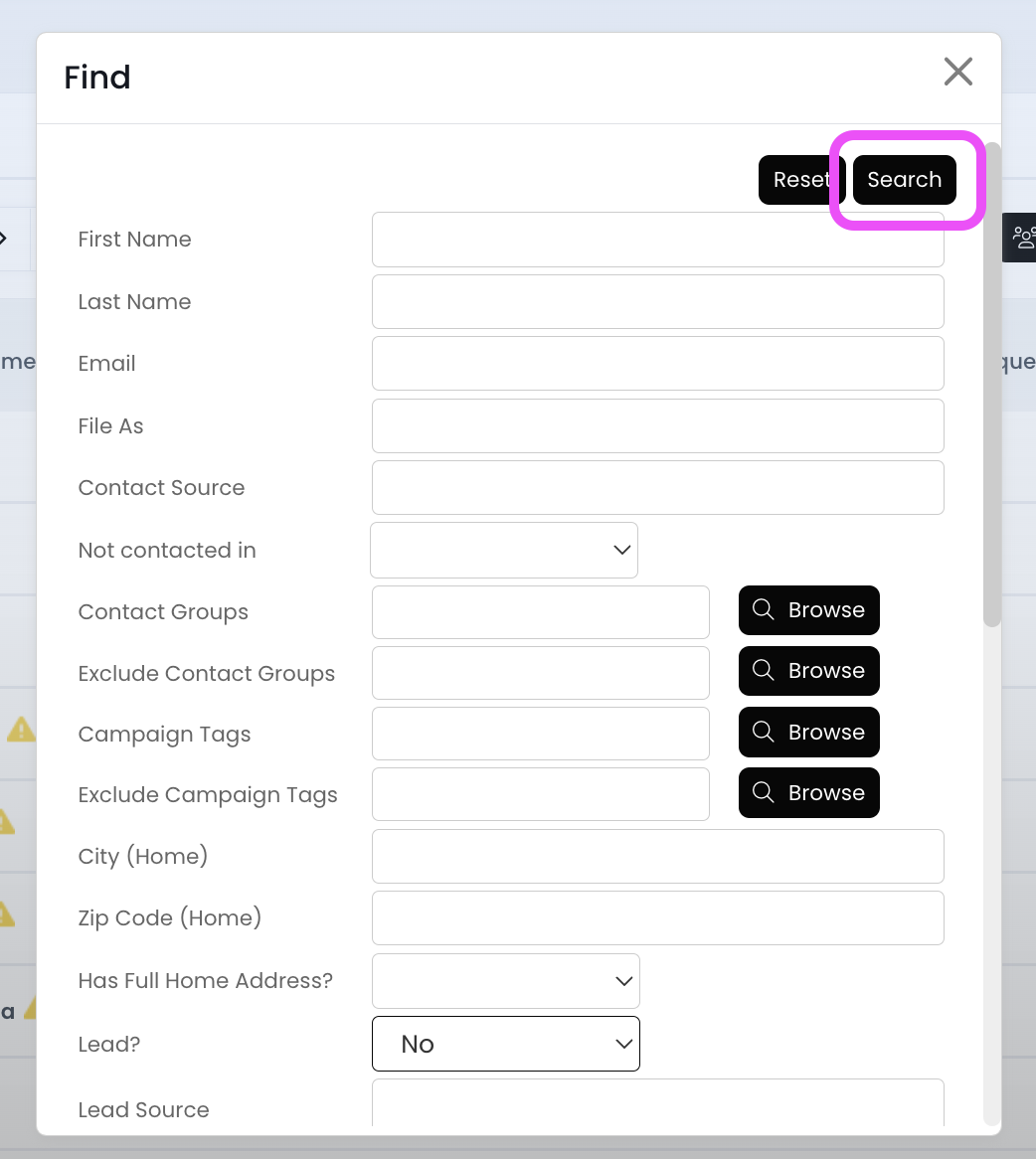 1.) From the left side menu, click on Contacts/Leads, and then click on Contacts/Leads again