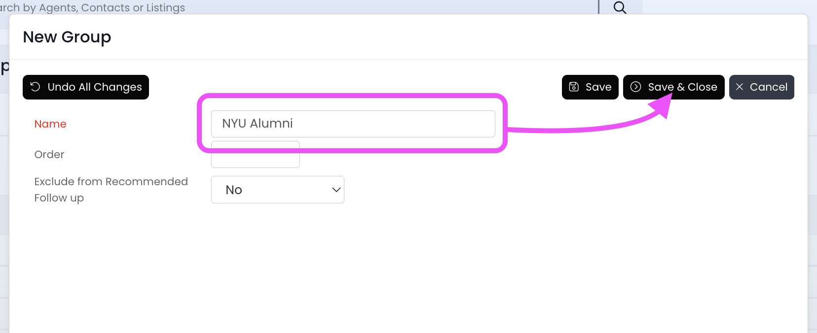 3.) Type in the Group name, and then click Save & Close