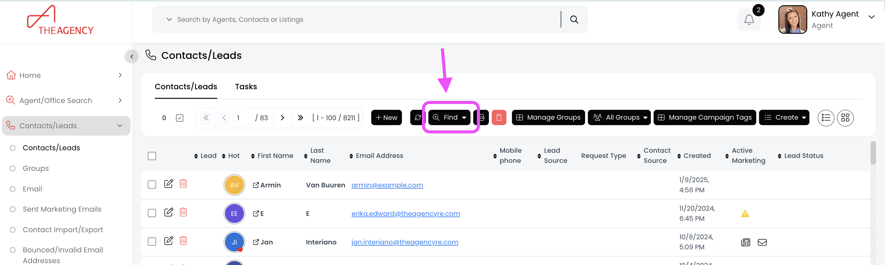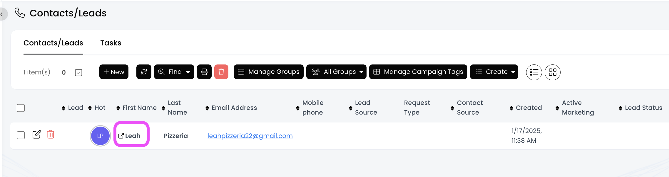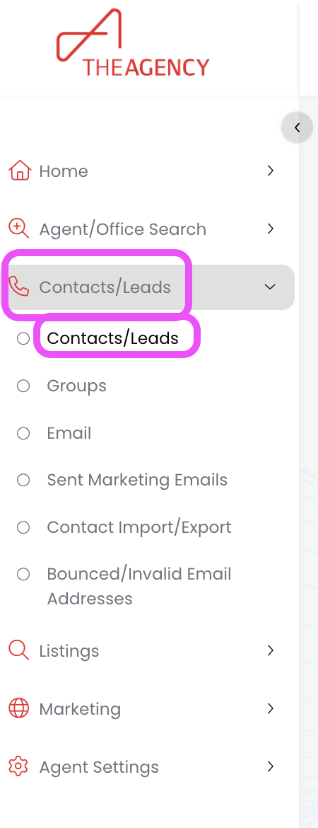 1.) From the left side menu, click on Contacts/Leads, and then click on Contacts/Leads again