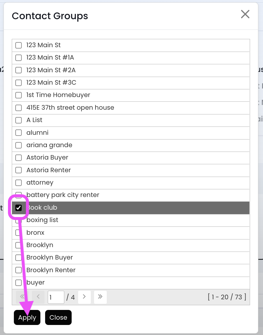 6.) Click the box to the left of the group name, and then click the Apply button