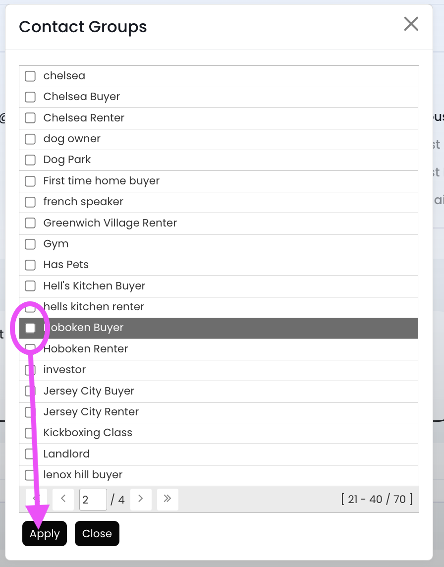 6.) Uncheck the box to the left of the group name, and then click the Apply button